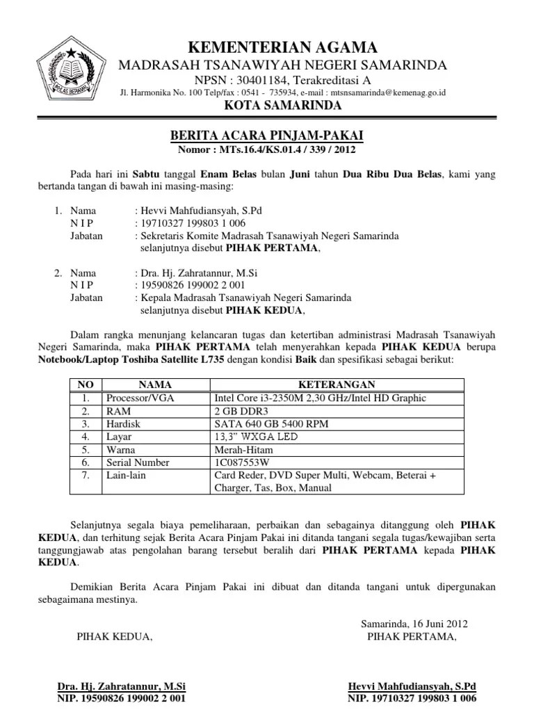 Permohonan pemakaian laboratoriumkepada yth.kepala laboratorium ps. Ulasan tentang contoh surat pinjam pakai barang inventaris kantor. Surat peminjaman barang adalah surat yang dibuat oleh perseorangan ataupun kelompok untuk meminjam barang dalam rangka kegiatan tertentu. Setelah mengisi formulir, permohonan akan kami tindak . Jika terjadi kerusakan atau kehilangan atas alat di atas selama saya pinjam.
