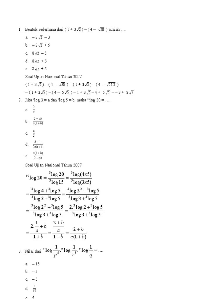 Materi w1f eksponen dan logaritma kelas x, semester 1 f. Contoh soal eksponen dan logaritma utbk sbmptn 2019. Buktikan kemampuanmu dan jadilah pemenang. Diktat pembinaan olimpiade matematika materi dasar. Lingkup materi berikut ini berdasarkan silabus osn smp tahun 2016, dimana cakupan.